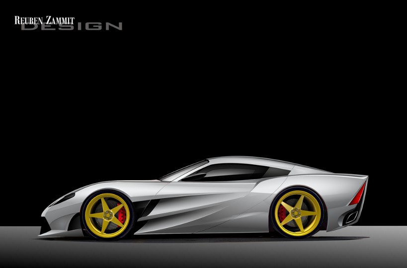 The latest side sketch incorporates heat outlets for the engine in the gull wing door. Scroll down for more information.